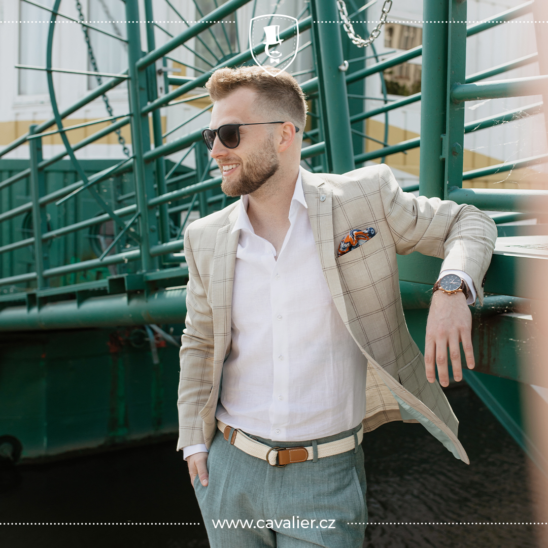 A pak je tu len – ideální materiál na léto a volnější události. Je lehký, výborně větrá a dodává obleku uvolněný, současně však velmi kultivovaný vzhled. Jeho přirozená mačkavost je součástí stylu, ne nedostatkem. Pokud chcete vzdušný, ležérní, ale stále precizně padnoucí oblek na míru pro horké dny, len je nepřekonatelný. Pro ty, kteří preferují méně „živý“ povrch, existují směsi lnu s vlnou – a ty kombinuji eleganci s praktičností.